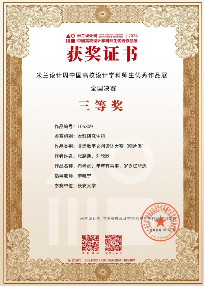 近日,第八届米兰设计周-中国高校设计学科师生优秀作品展落下帷幕,304永利师生成绩斐然。由广播影视系侯婧老师指导的广播剧《好吃的非遗—王致和腐乳》(作者:2023级艺术专硕田雯艺)获国家二等奖;广播影视系赵艳老师指导的纪录片《天人一钧》(作者:2021级广播电视编导张艺嘉、赵文添、刘秉霖、田依诺、杜沛璇)、广告学系李晓宁老师指导的文创设计作品《布老虎:年年有喜事,岁岁忆非遗》(作者:2022级广告学张路遥、刘欣欣)分获国家三等奖。