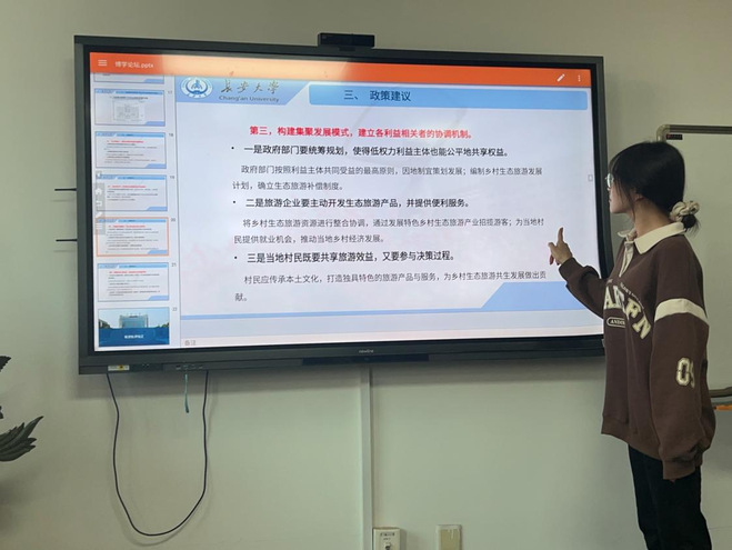 接着,王书琪针对乡村生态旅游共生模式的构建提出的政策建议。第一,要加大资金投入,完善生态旅游共生模式的基础设施。第二,要强化政府引导,加快制定生态旅游共生关系发展规划。第三,构建集聚发展模式,建立各利益相关者的协调机制。第四,明确利益的补偿标准,实现各相关主体的利益平衡。