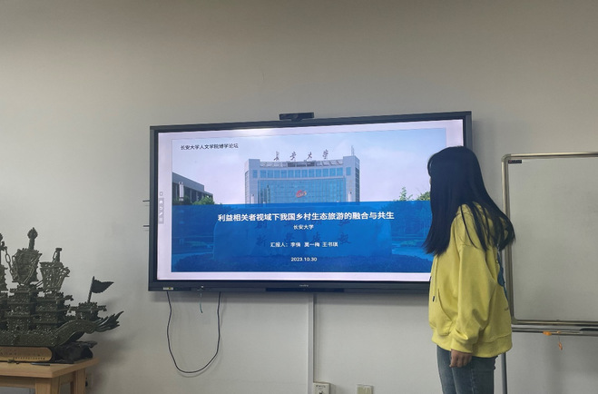 首先,李倩就生态旅游融合共生的政策背景、现实定位两方面展开阐述。她讲到,党的二十大报告中指出“全面推进乡村振兴,坚持农业农村优先发展、推动绿色发展、促进人与自然和谐共生”为乡村生态旅游做出了战略支撑;基于利益相关者理论与共生理论对乡村生态旅游提供理论依据,她指出,文旅生态圈是文旅融合发展的高级化和新趋势。西安周至文旅资源丰富而又独特,具有较大的发展潜力。构建文旅生态圈,以生态圈模式推动周至文旅的发展,是西安文旅高质量发展的一个新路径。