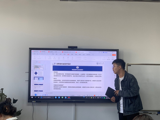 最后,徐屹轩主讲“数字经济背景下网络直播消费者权益保护的路径”。互联网的广泛应用引发了人们对网络直播的关注,我国在线直播用户数量增长迅速,网络直播拥有广阔的消费市场,并拥有一群忠实的消费群体。由于网络直播购物的便利性与新颖性,越来越多消费者选择在网络直播平台上购物。但不少商家在直播过程中会进行虚假宣传,从而吸引消费者购物。由于消费者在观看直播的过程中并不能鉴别出商品质量的好坏,最终导致消费者的权益受到了侵害。然而,我国立法在网络直播领域有所欠缺,相关部门对其监管并不到位,导致消费者在网络直播购物中难以维权。为此我国迫切需要制定网络直播专门性法律并加强对网络直播平台的监管。此外,还需构建具有多样化的争端解决机制,为保护消费者的合法权益提供法律保障。