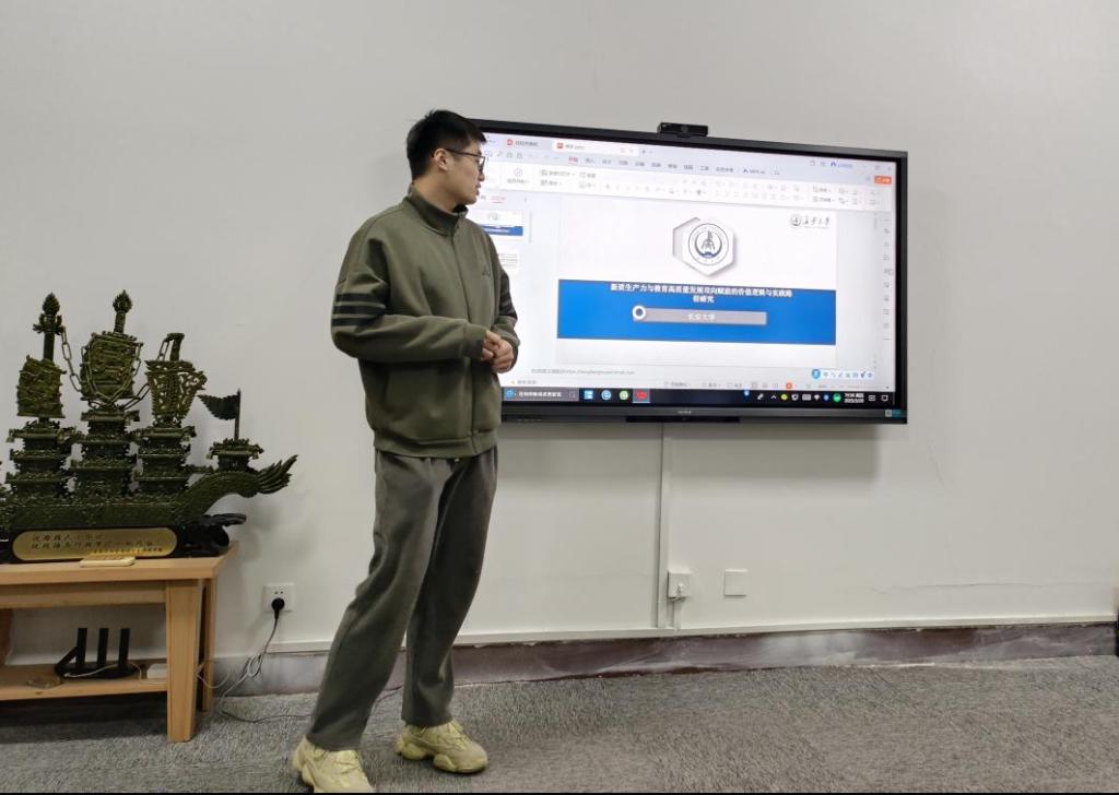 赵晨阳分享的内容为“新质生产力与教育高质量发展双向赋能的价值逻辑与实践路径”。赵晨阳指出新质生产力推进了教育理念革新、促进人才培养模式改革以及教育内容和方式的重构,同时也助力教育管理的变革;其次,赵晨阳从劳动力三要素的角度分析,认为教育高质量发展为新质生产力提供更为优质的劳动者、更为先进的生产工具、更为广阔的产业领域。最后通过理论分析为促进新质生产力的发展提出了实践路径。