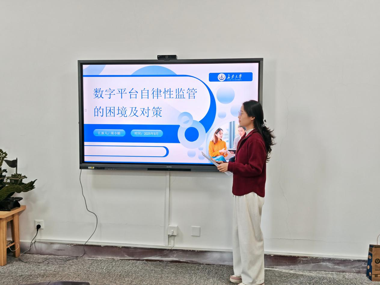 2025年3月25日上午,304永利研究生“博学”学术讲座第118期在学院434学术工作坊成功举办。此次博学讲座由2022级法学专业研究生周小娟、冯延蕊主讲,分享的主题为“平台自律监管与自动驾驶算法规制的优化路径探析”,研究生指导教师刘志及相关同学参加了此次活动。