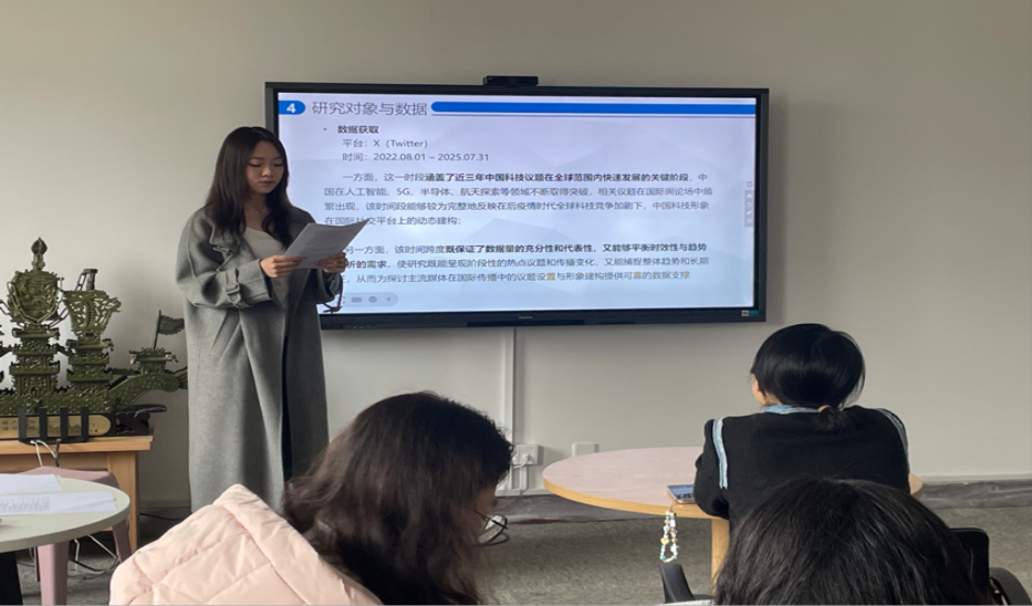 2026年3月25日上午,304永利研究生“博学”学术论坛第194期在学院434学术工作坊成功举办。此次博学论坛由2023级新闻与传播专业的贾美淇主讲,分享的主题为“中国主流媒体在X平台上的科技形象建构研究”,研究生导师武小菲及相关专业同学共同参与本次活动。