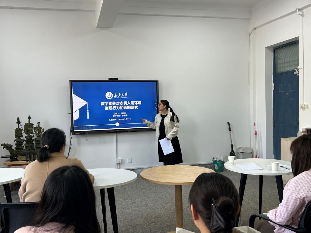 胡国秋首先从国家政策导向、现实困境与时代机遇三个维度阐述了研究背景。她指出农村人居环境整治是乡村振兴的重要任务,而农民参与不足仍是当前治理的突出短板。在此基础上,她提出了三个核心研究问题:数字素养是否显著影响农民的人居环境治理行为、社会资本是否在其中发挥中介作用、以及这种影响在不同群体之间是否存在差异。接着,胡国秋系统梳理了社会资本与环境治理参与、数字素养与农民行为两个方面的既有研究。她指出现有文献在人居环境治理行为的专门聚焦、多维测度、中介机制检验以及内生性问题处理等方面存在的不足,并据此提出了四项研究假设。在研究方法部分,她重点介绍了数据来源、变量测度及模型构建过程。最后,她从研究场景创新和变量测度创新两个方面总结了本研究的贡献,同时也指出了样本代表性和数据截面性等方面的不足。