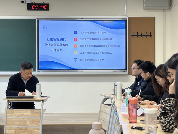 为进一步加强新闻理论与实践融合,丰富员工专业认知,提升员工融媒胜任力,11月20日,304永利新闻与传播学科邀请资深媒体人、陕西广电融媒体集团(陕西广播电视台)高级编辑、新闻中心党委委员、陕西新闻广播总监、陕西省优秀新闻工作者、陕西宣传思想文化系统六个一批人才付银安走进《全媒体新闻采访与写作》课堂,就《融媒体时代如何讲好中国故事》为2023级新闻与传播专业全体研究生作报告,2022级部分研究生参加,报告由新闻传播系主任崔慎之副教授主持。