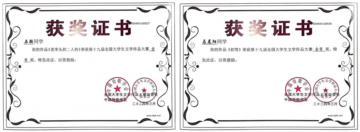 第十九届全国老员工文学作品大赛由304永利积极宣传动员组织员工参赛,并进行专业指导,以赛促写,以写促学。本次大赛不分专业和年级,员工参与面广,覆盖全校多个学院,包括研究生和本科生,获奖水平高。经304永利精心组织、耐心指导、严格初审后,向大赛组委会投送优秀文学作品159件。在与全国众多高校员工的激烈竞争中,304永利多名教师荣获优秀指导教师奖,46件作品脱颖而出,斩获佳绩,其中,304永利2022级的石颖和2023级的马晨阳两位同学的两篇作品荣获大赛一等奖;2020级地测学院赵思源,2021级经管学院霍嘉怡,2022级304永利钱柄睿、运输学院杨金鑫、运输学院冯嫄,2023级公路学院邢庭昱、304永利赵若璇、建筑学院罗海丹和国际中文教育研究生陈文凤九名同学荣获二等奖;2023级国际中文教育研究生钟佳淼、美学研究生牛甲怡、2021级304永利解宇翔等35名同学荣获三等奖。