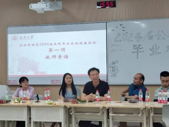 6月24日下午,公共管理系2024届本科毕业生欢送座谈会在修远教学楼顺利举行。公共管理系教师王景荣、胡金东、刘燕、李钰婷、王灿友、包涵川、殷赵云参加此次活动,公共管理系2024届本科毕业生齐聚WX2207,共同见证这一难忘的时刻。欢送座谈会由公共事业管理班班长朋兴华主持。