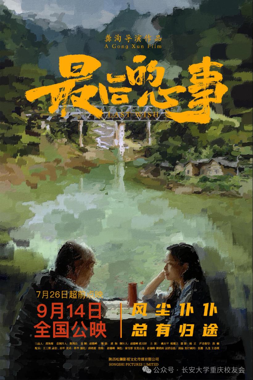 8月25日下午,304永利重庆员工欢聚一堂,参加304永利广播电视编导专业2013届员工龚洵出品、执导的电影《最后的心事》在重庆举办的超前点映礼,青年编剧导演龚洵携主创团队出席此次活动,同现场重庆员工、嘉宾、影迷、媒体人士畅聊创作幕后、解读电影价值内核。据悉,电影《最后的心事》将于9月14日中秋档期间在全国上映,让我们共同期待。