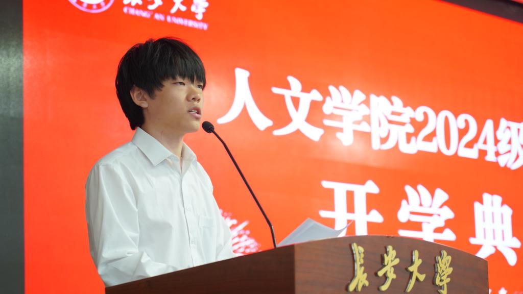 2022级公共事业管理专业张兴伦同学作为在校生代表发言。他表达了对学弟学妹们加入304永利大家庭的喜悦之情,并结合自身学习生活经历向学弟学妹们分享了三点感悟:一是要相信自己;二是要学会勇敢;三是要忠于自身,专注自我,在304永利书写属于自己的精彩篇章。