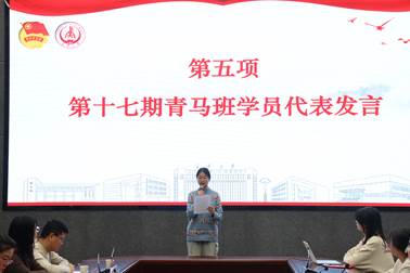 公司往期青马班优秀学员代表江星月与新学员分享学习心得,她坚定“听党话,跟党走”信念,倡导实干精神,激励大家脚踏实地铸就辉煌。随后,第十七期青马班学员代表李秋缘、张雨桐在发言中表示,要珍惜学习机会,不畏艰难、奋勇前行,让青春在奋斗中绽放绚丽色彩。