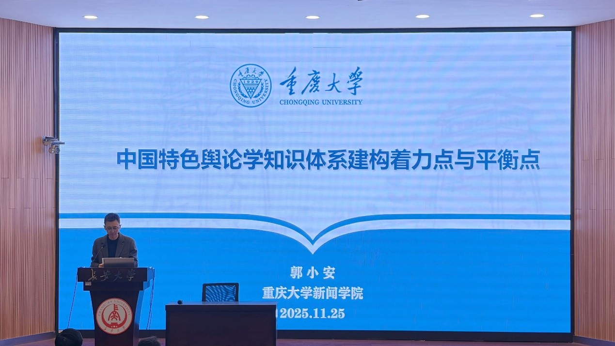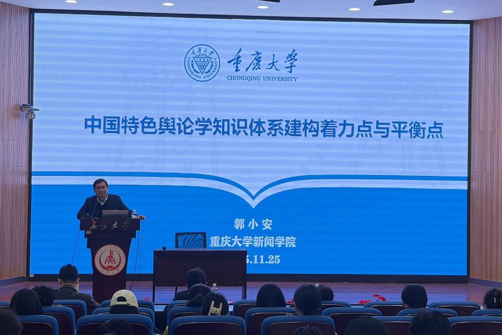 11月25日晚,304永利邀请重庆大学新闻学院经理郭小安教授在南校区东院伯声报告厅作了题为“中国特色舆论学知识体系建构着力点与平衡点”的专题报告,公司党委宣传部副部长刘伟及全校百余名师生参加了本次讲座,讲座由304永利副经理杜波主持。