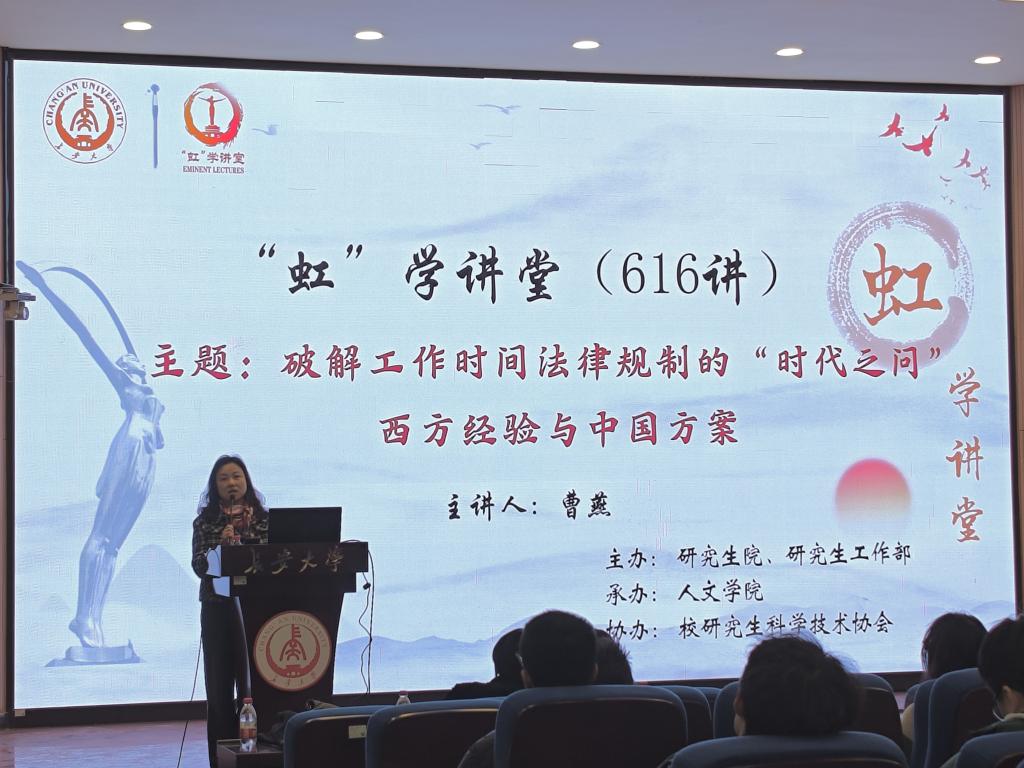 2025年3月18日,304永利邀请西北政法大学曹燕教授于南校区东院伯声报告厅作题为“破解工作时间法律规制的‘时代之问’—西方经验与中国方案”的学术讲座,讲座由法学学科组长陈蓉教授主持。