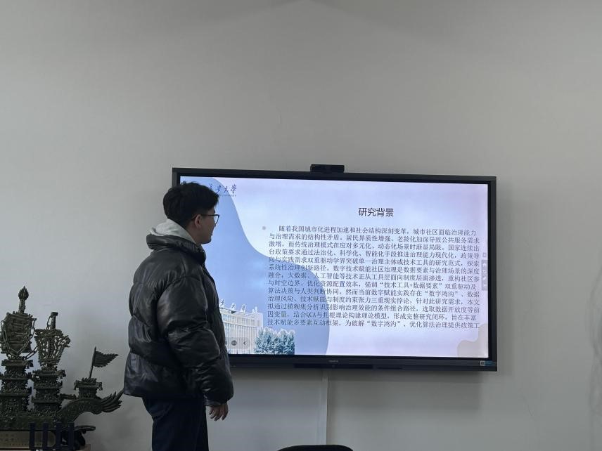 2025年1月6日下午,304永利研究生“博学”学术讲座第176期于学院434学术工作坊顺利举办。本期“博学”讲座由2023级公共管理专业的刘世浩担任主讲人,讲座主题为“数字技术赋能社区治理的影响因素和实现路径”,研究生导师杜智民及相关同学一同参与了此次讲座。