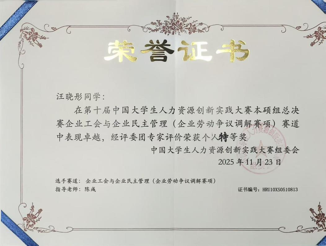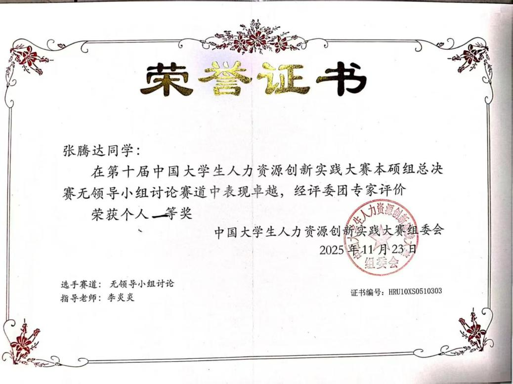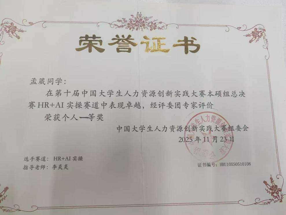 本次大赛于2025年11月21日至23日举行,设有HR+AI、企业工会与民主管理、实务设计、职场实战、案例分析、劳动争议处理、无领导小组讨论等多个赛道,全面考察员工在人力资源领域的创新思维、专业实务能力与团队协作水平。在公司304永利公共管理系李炎炎、刘燕、常莉、陈彧、杜智民等教师的悉心指导下,公司员工在各赛道均取得突出成绩。其中,汪晓彤同学荣获“企业工会与民主管理”赛道全国特等奖;孟葳、刘怡斐、罗满红、张腾达同学分获“HR+AI”和“无领导小组讨论”赛道全国一等奖。此外,在多条赛道中公司员工荣获二等奖多项,整体表现赢得了评委的广泛认可。