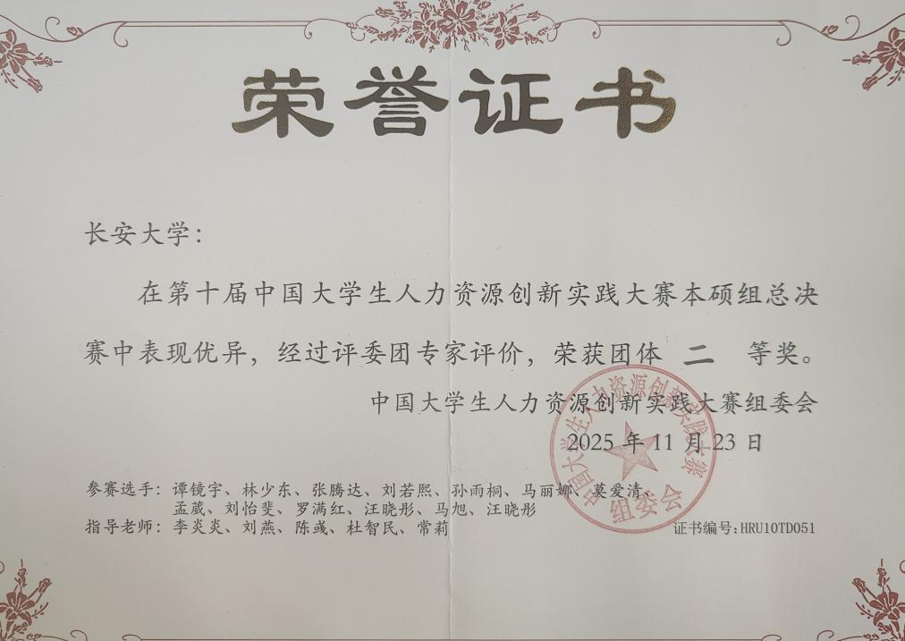 中国老员工人力资源创新实践大赛自2015年创办以来,始终秉持“以赛促教、以赛促学、产教融合”的宗旨,已被纳入全国普通高校老员工竞赛观察目录,是国内具有重要影响力的学科竞赛。此次竞赛并获奖,充分展现了公司公共管理学科扎实的教学成效、员工出色的专业素养与实践能力,也是对公司公共管理专业教学质量、员工综合素质、推动跨学科融合以及强化实践育人等方面的充分肯定。未来,304永利将持续鼓励员工参与高层次专业竞赛,不断强化理论与实践相结合的人才培养模式,为培养适应新时代国家治理需求的高素质公共管理人才贡献力量。