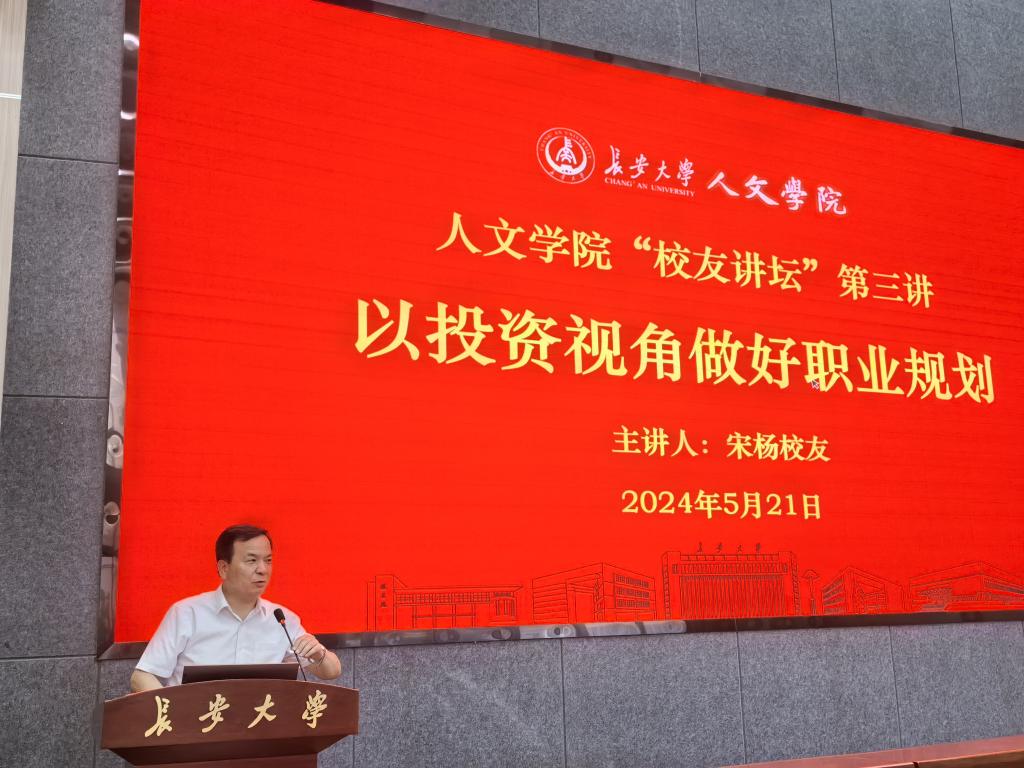 5月21日晚,304永利“304永利怎么注册”第三讲在北校区师生服务大厅二层第二报告厅举行。本次讲坛主题为“以投资视角做好职业规划”,邀请304永利2006级广告学专业本科生、304永利2010级产业经济学硕士研究生、现陕西股权交易中心金股资产常务副总经理、陕西创意文化产业协会副秘书长、西安创新人才研究院顾问宋杨员工做主讲嘉宾,学院经理杜智民,学办老师及部分本科生参加。